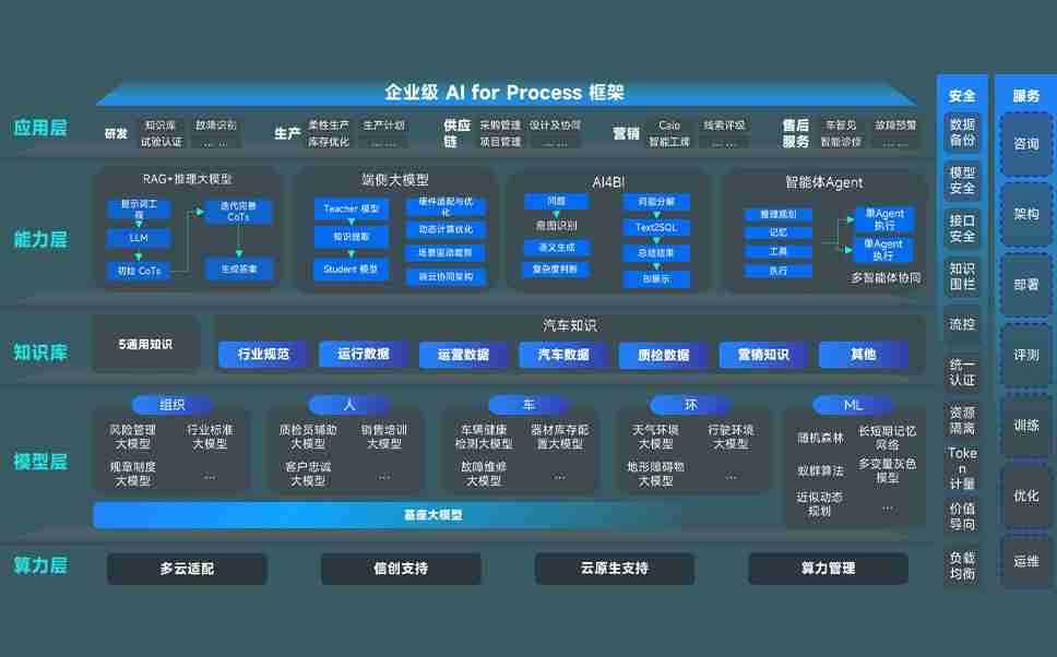 端到端的一站式AI工作空间深度融合了从企业战略规划到日常经营的全流程业务板块,,,,定向解决车企内部领域多、、、、部门多、、、链条长、、、场景碎片化等难题,,,,支持车企快速构建以AI为核心的生产力写作体系,,实现任务执行与AI能力的无缝集成与交互